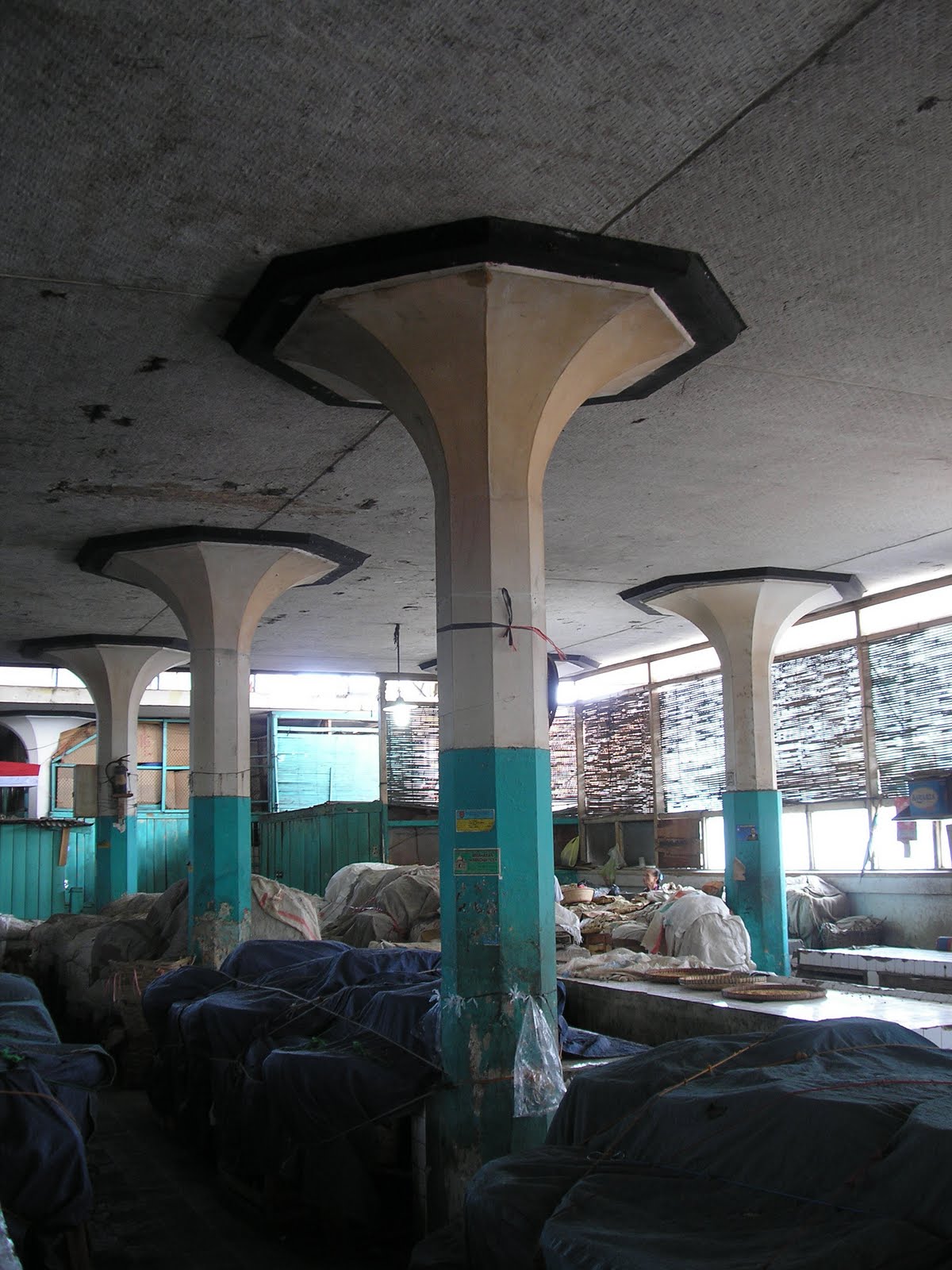 When we come to enter the inside of the building, I think we can directly recognize 'the beauty' of the building. Under the huge large flat concrete roof we can find spacious internal spaces that consist of two floors with large atrium in the middle. Since the building is designed and built during Dutch Colonial Era, this building should be one of the largest modern market building in that era. The design was generated in modern approaches.